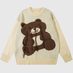 Cartoon Tassel Bear Embroidered Pullover