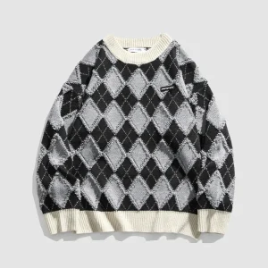 Argyle Patchwork Printed Sweater