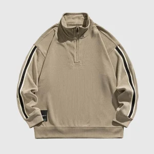Striped Sleeve Half-Zip Pullover