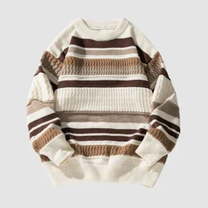 Striped Cable Patchwork Design Pullover