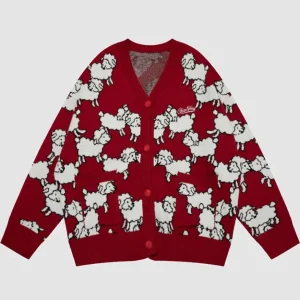 Dog Pattern Oversized Knit Sweater