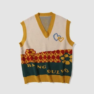Contrast Color Heart & Flower Pattern Vest Sweater