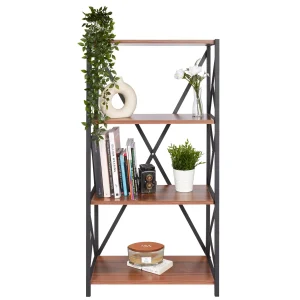 4 Tier Industrial Style Display Unit Book Shelf – Walnut