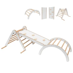 Kit: triangolo di arrampicata + culla dondola + scivolo per bambini | Telaio di arrampicata con scivolo per bambini design minimalista | Triangolo di arrampicata per i piccoli bambini con uno scivolo rifinito con un laminato | 100% ECO | Prodotto nell’UE
