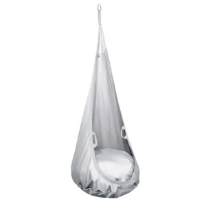 Balançoire grotte grigio chiaro | Balançoire naturelle pour enfants avec poignées en tissu | Chaise suspendue pour enfants avec remplissage en silicone | 100% ECO | Fabriqué en UE