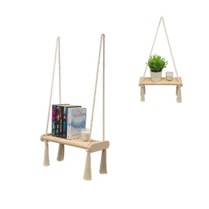 MAMOI® Mensola da parete in legno boho appesa mensola in macramè intrecciata a mano mensola galleggiante decorazione da parete supporto per piante per cucina camera da letto soggiorno