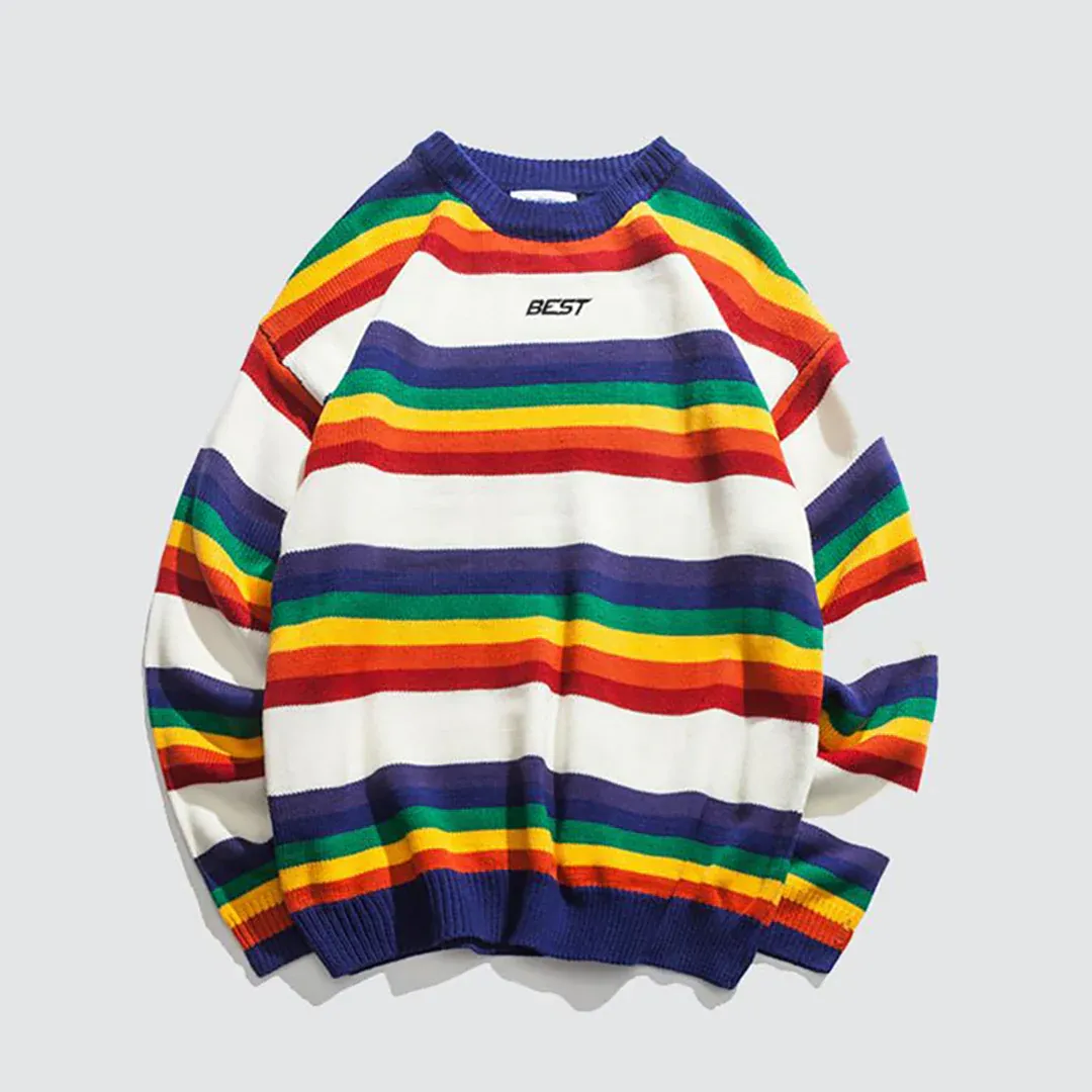 A muti-coloured striped sweater collection.Offering a classic, unique style for you.