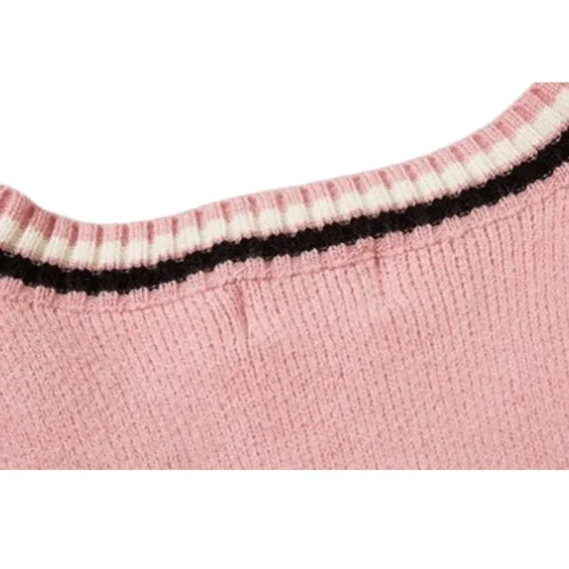 This Color Block Letter Loose V-Neck Vest is crafted with 42% acrylic and features a stylish letter-shaped color-block design.