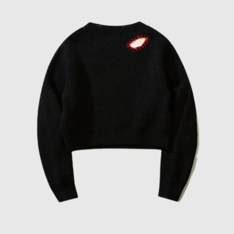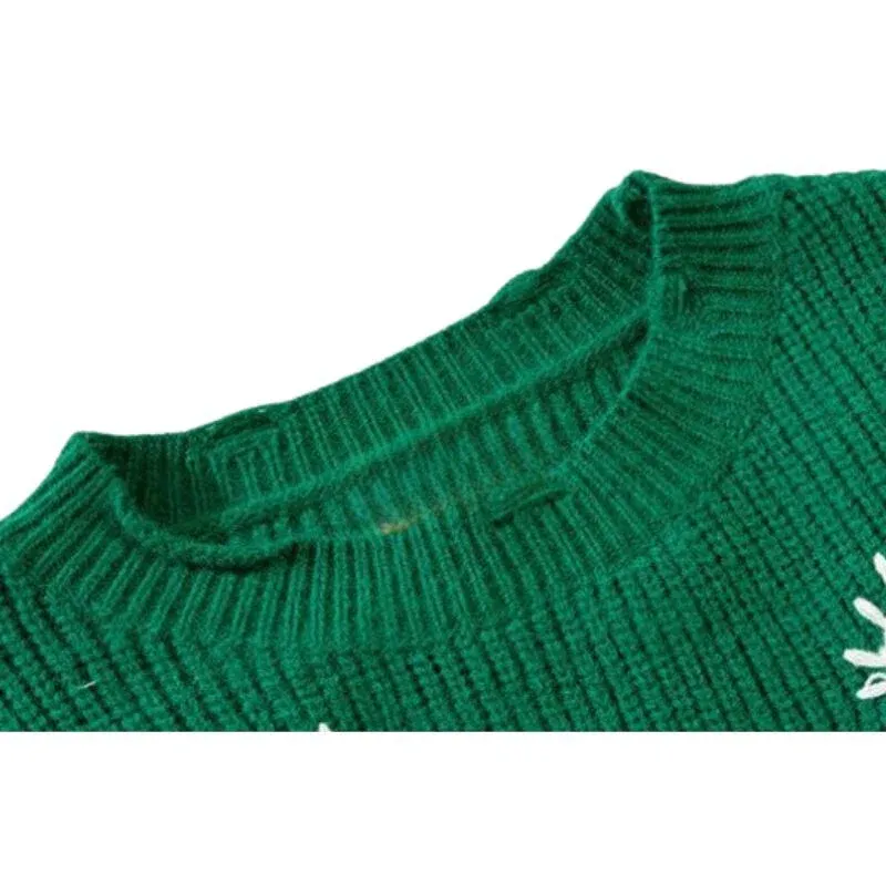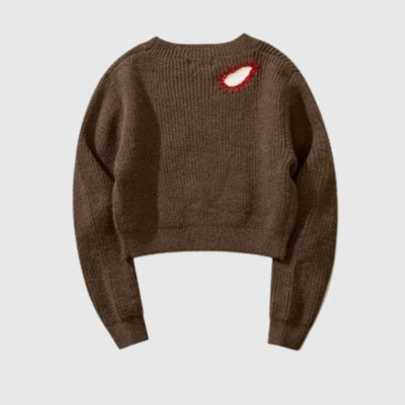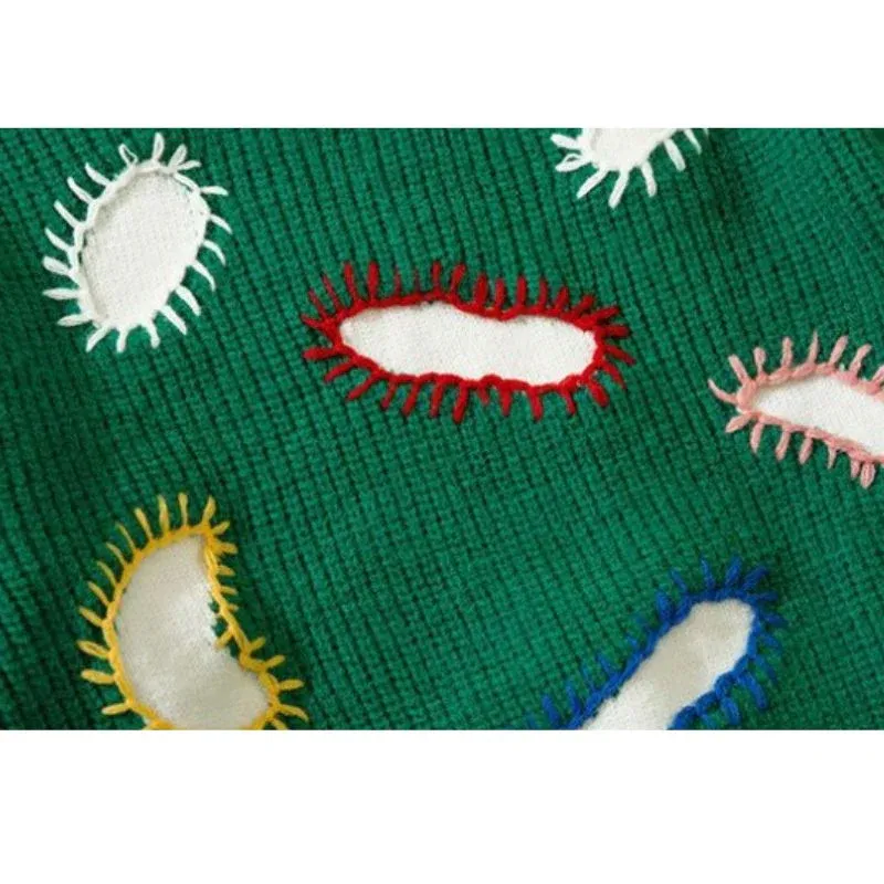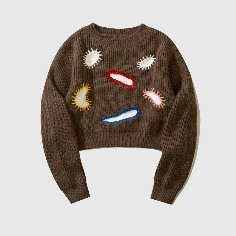 Embroidered Patchwork Cute Short Knit Sweater