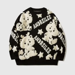 Features: Pullover, crew neck, long sleeve, embroidery patchwork design, relaxed fit, jacquard weave, couple outfits.