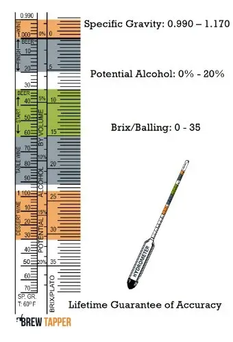Measures your potential alcohol content (OG) and your final alcohol content (FG) based on the fermentable sugar content.