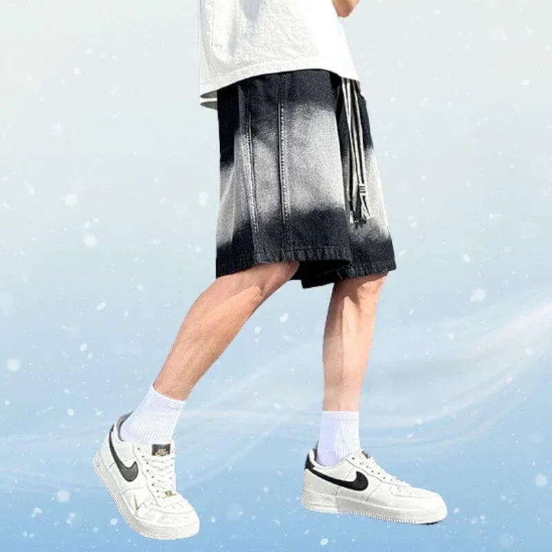 - Color contrast, denim, drawstring waist, wide leg, straight leg