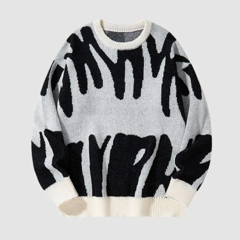 Features:?Pullover, crew neck, long sleeve,?irregular color contrast design, relaxed fit, jacquard weave, couple outfits.