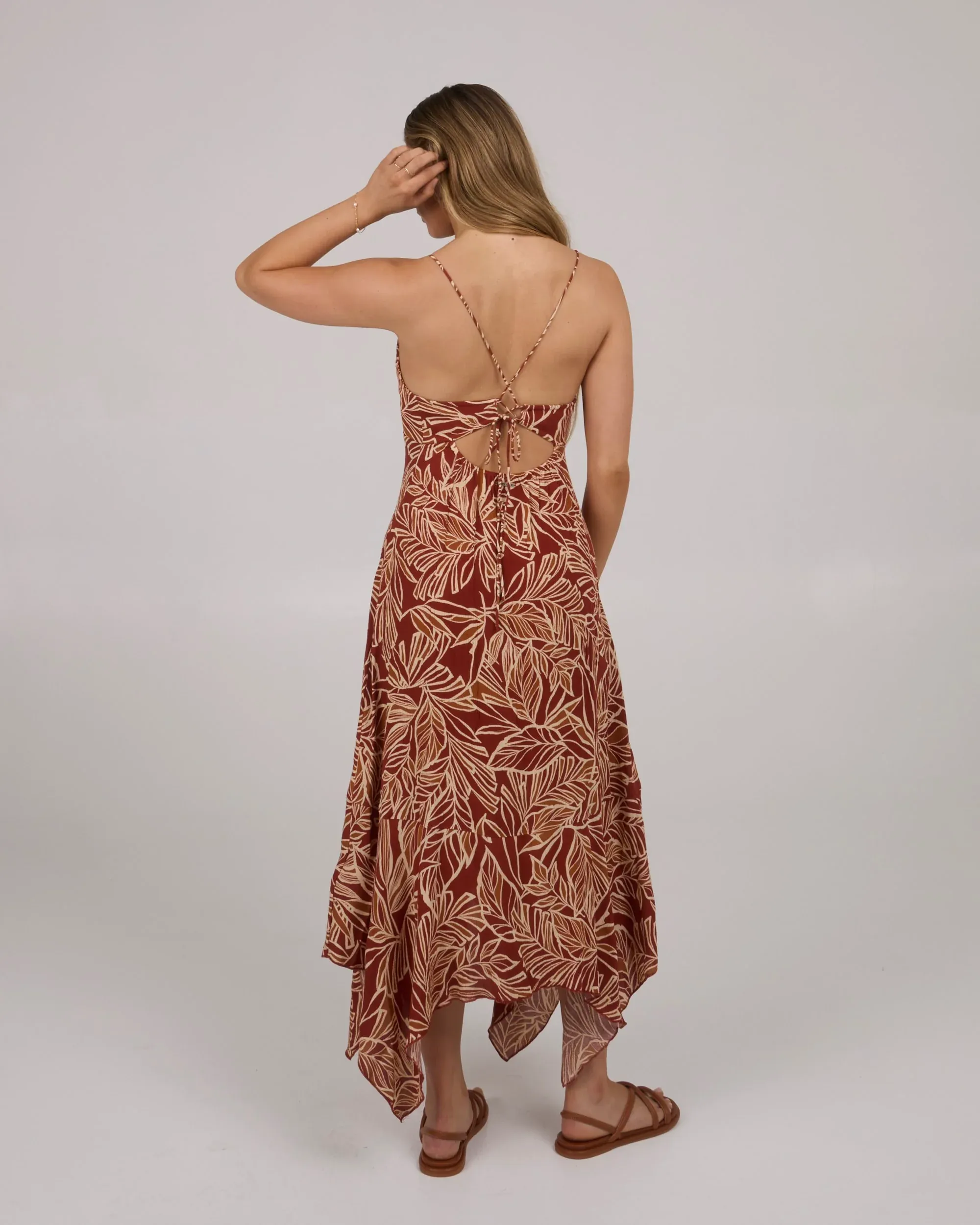 - Midi dress with triangle top and asymmetrical hemline
