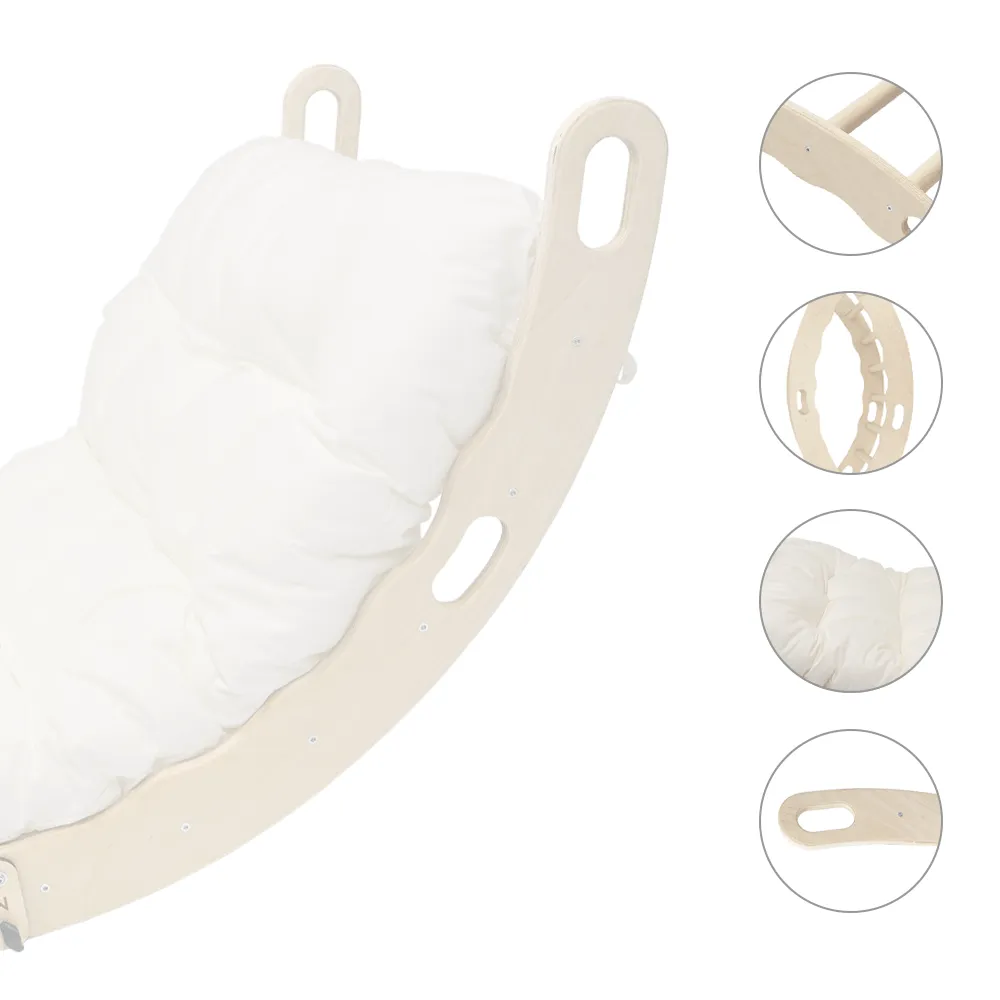 Giocattolo 2 in 1: a seconda della regolazione, il giocattolo è un triangolo rampicante o una dondolo bambini. La struttura arrampicata bambini è fabbricata in legno di pino naturale e in legno compensato. Le materie prime vengono protette dai prodotti ecologici che sono sicuri per i bambini e rispettosi dell’ambiente. Il design semplice si intonerà sia a qualsiasi stanza che all’aperto. Tutti gli elementi vengono finemente tagliati (al CNC) e completati, in modo da essere privi di qualsiasi bave e schegge. Puntando l’arco verso l’alto si ottiene una torre da arrampicata, e girando il giocattolo si può usarlo come una culla a dondolo.