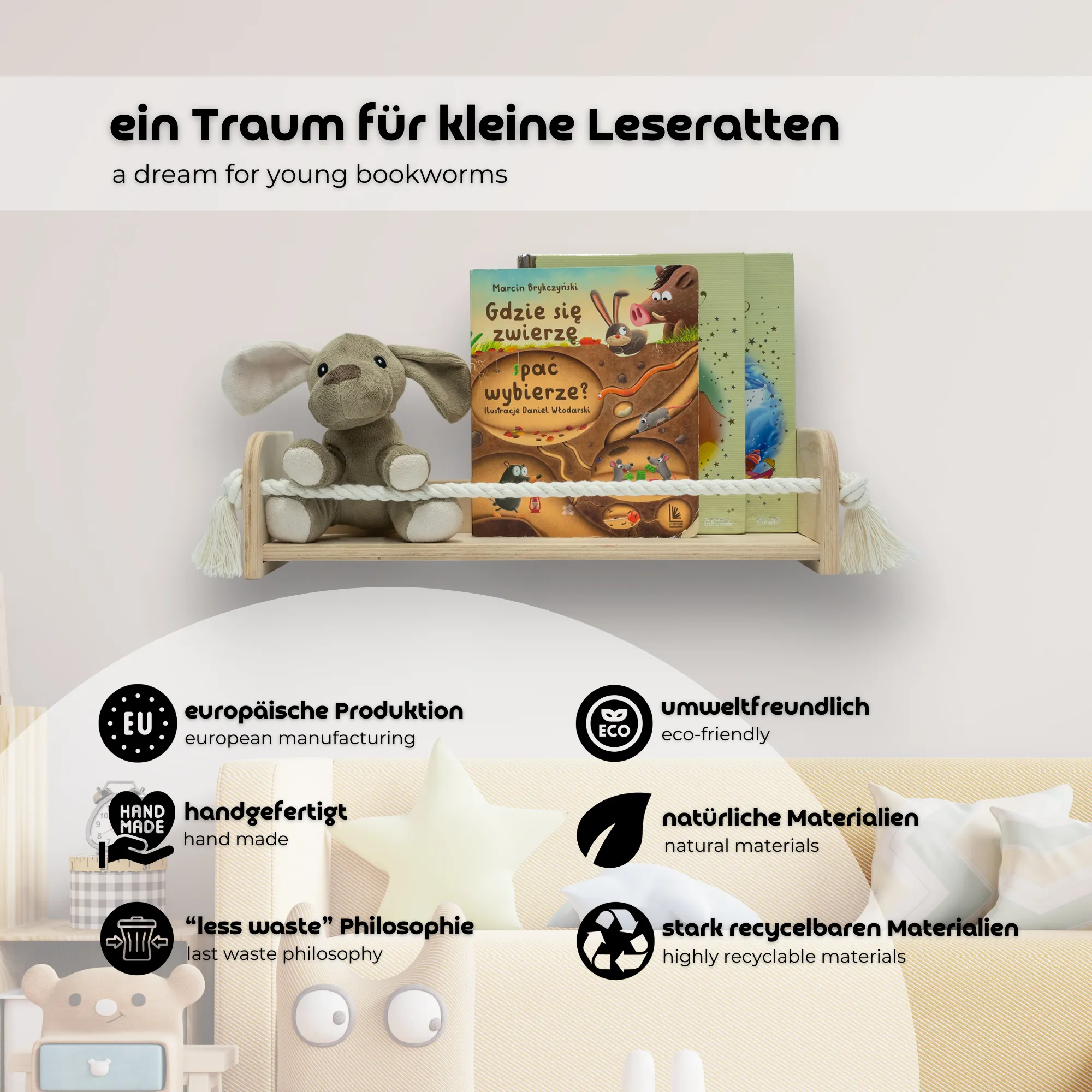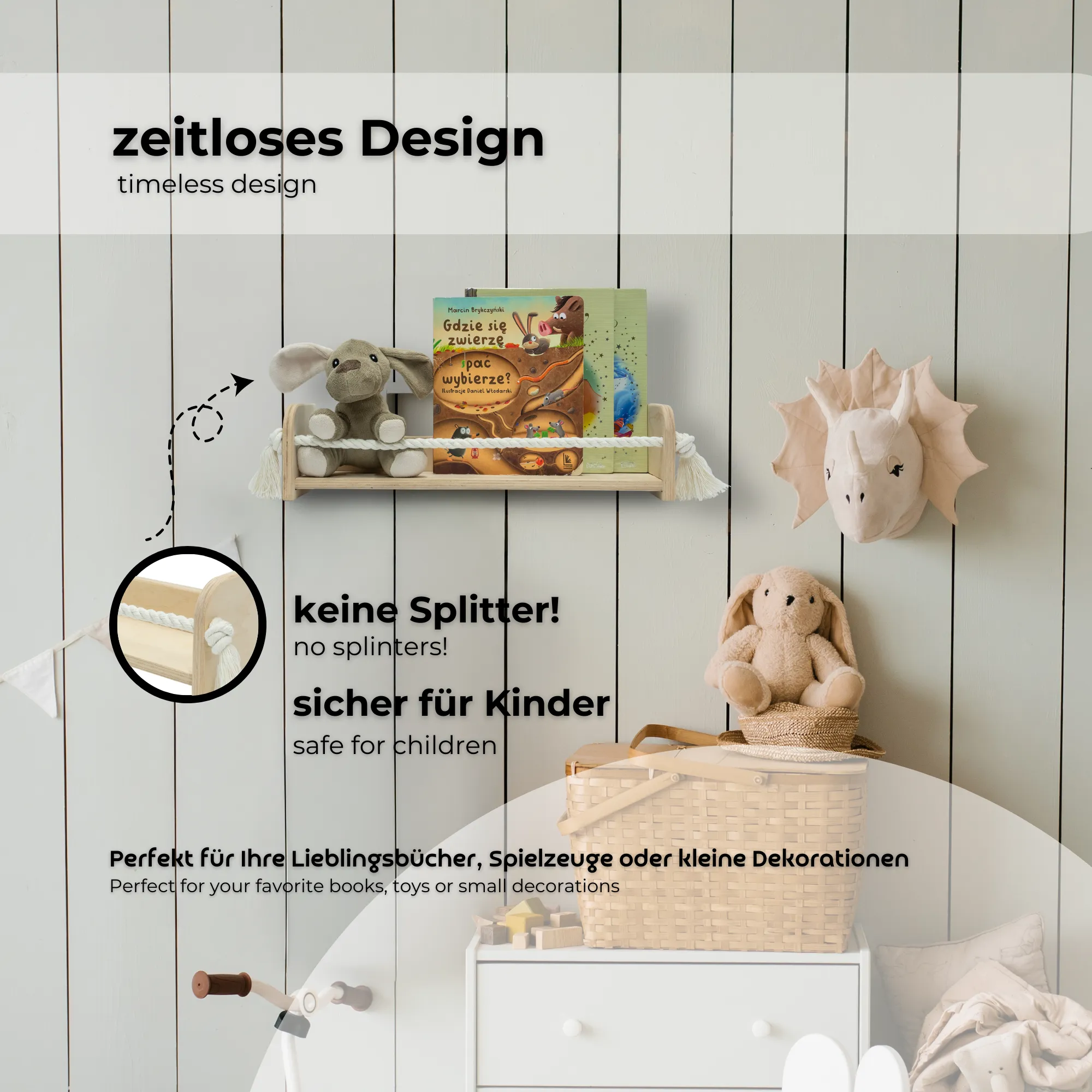 ● MAMOI holz kinderschaukel kann jahrelang benutzt werden, da sie sich einfach der Größe und dem Gewicht eines Kindes anpasst.