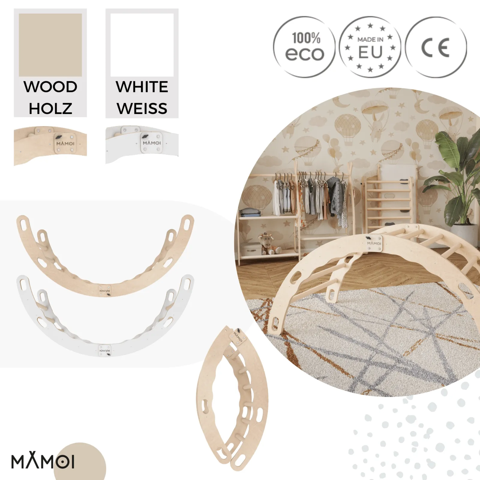 MAMOI® Bujak drewniany dla dzieci | Drewniana kołyska Drewniana drabinka do bujania z naturalnego drewna | Wielofunkcyjny bujak montessori Wspinaczka dla dzieci | CE | 100% ECO | Wyprodukowano w UE