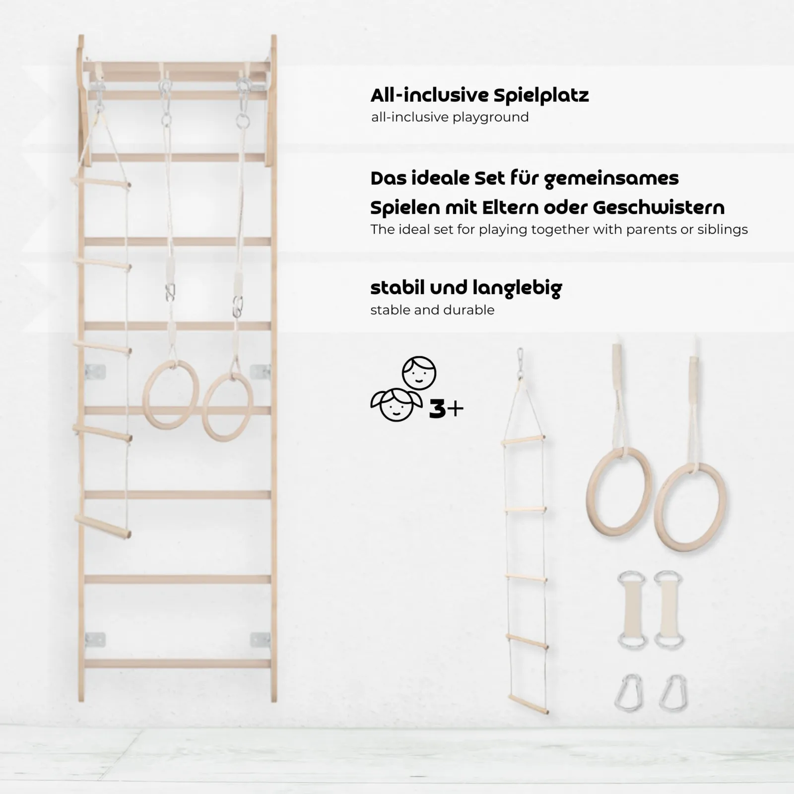 Drewniana drabinka gimnastyczna to nie tylko sprzęt sportowy, ale także wielofunkcyjny plac zabaw, który wspiera rozwój fizyczny i motoryczny dzieci, zapewniając im godziny radości. Solidna i trwała konstrukcja, wykonana z naturalnego drewna bukowego i wysokiej jakości sklejki, gwarantuje bezpieczeństwo użytkowania. W zestawie znajdują się kółka gimnastyczne, drabinka linowa oraz materac, które dodatkowo urozmaicają zabawę i ćwiczenia. Możliwość regulacji uchwytu pozwala dostosować wysokość do wieku i umiejętności dziecka, a ergonomiczna szerokość szczebli została zaprojektowana specjalnie z myślą o najmłodszych. To idealny zestaw do wspólnej zabawy z rodzeństwem i rodzicami, łączący rozwój motoryczny, siłowy i koordynacyjny. Bezpieczeństwo na pierwszym miejscu! Drabinka ma gładkie, starannie szlifowane powierzchnie, co oznacza brak drzazg i ostrych krawędzi. Mocne śruby i wysokiej jakości komponenty zapewniają pełną stabilność nawet przy intensywnym użytkowaniu. Materac dodatkowo zwiększa poziom ochrony, dzięki czemu dzieci mogą bezpiecznie ćwiczyć i bawić się bez ryzyka kontuzji. Dzięki zdejmowanemu pokrowcowi można go łatwo utrzymać w czystości, co zapewnia higieniczne warunki użytkowania. To rozwiązanie, które rośnie wraz z dzieckiem – dostosowuje się do wieku i zmieniających się potrzeb użytkownika. Dzięki jasnemu, naturalnemu wykończeniu, drabinka świetnie wpasowuje się w każde wnętrze – od nowoczesnych aranżacji po klasyczne pokoje dziecięce. Holistyczny rozwój dziecka to priorytet – sprzęt wspiera równowagę, koordynację, siłę i ogólną sprawność ruchową, zachęcając do codziennej aktywności w domu. Łatwy montaż i możliwość instalacji na ścianach murowanych, betonowych i drewnianych sprawiają, że produkt jest wszechstronny i trwały. To inwestycja na lata, która pozwala dziecku cieszyć się zdrową aktywnością w bezpiecznych i komfortowych warunkach domowych.