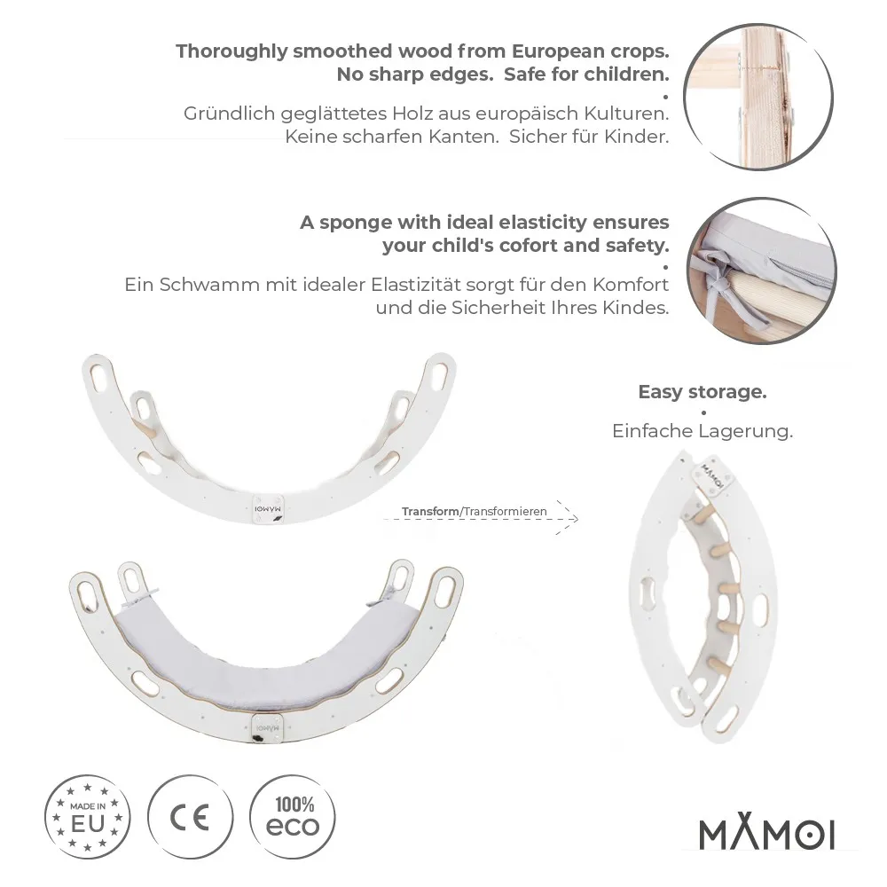 Bujak drewniany dla dzieci marki MAMOI dedykowany jest dla dzieci powyżej 3 roku życia. Maluchy mają możliwość ćwiczyć równowagę, rozwijać mięsnie oraz bawić się. Dodatkowo bujak może służyć do odpoczynku i relaksu. Drewniana huśtawka może być używana w każdym pokoju. Z łatwością można go przenosić między pomieszczeniami.