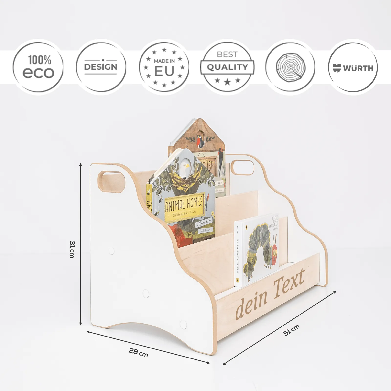 La libreria montessori è destinata all’uso interno. Deve essere protetto da condizioni meteorologiche sfavorevoli. Il produttore non è responsabile per il mancato rispetto della conservazione del prodotto.