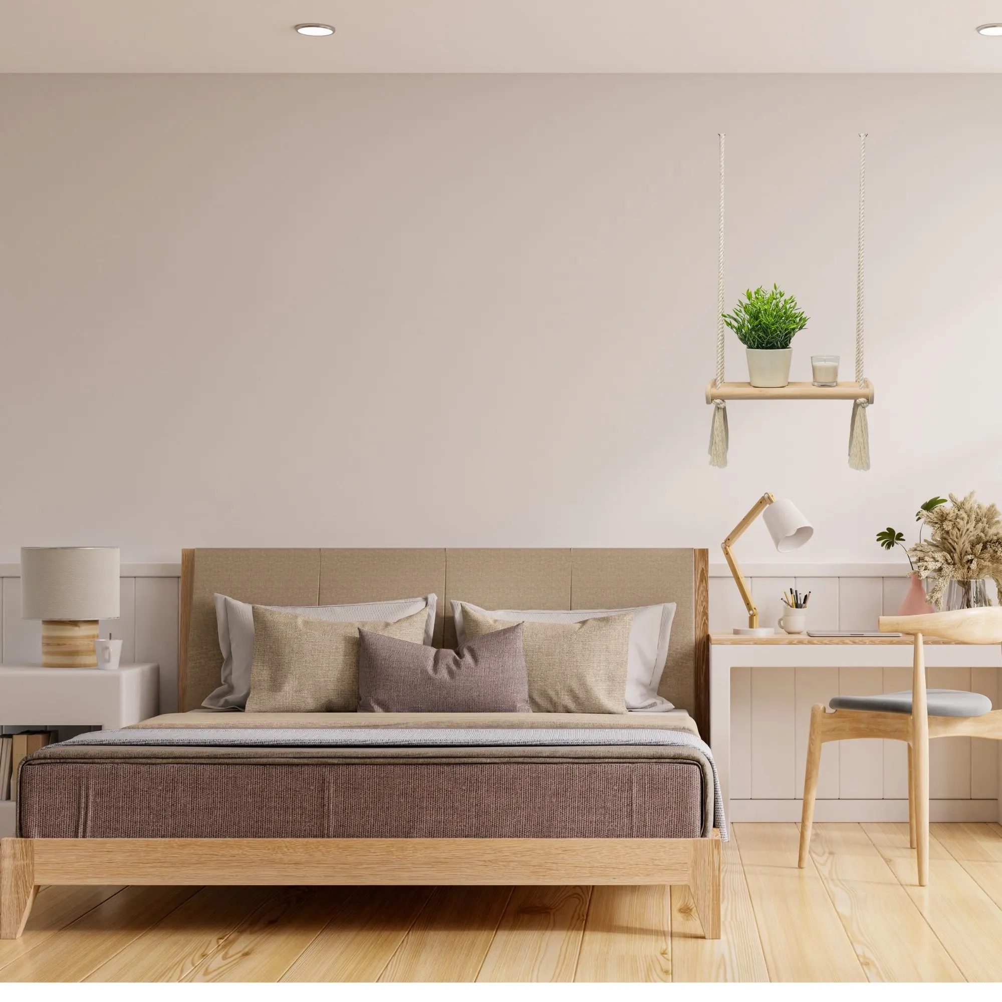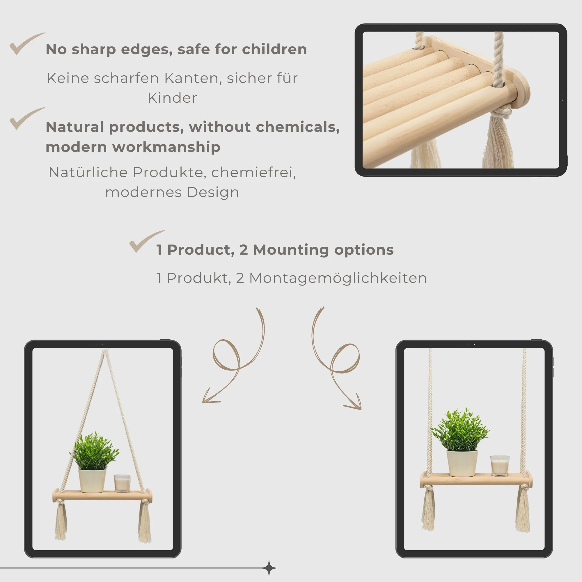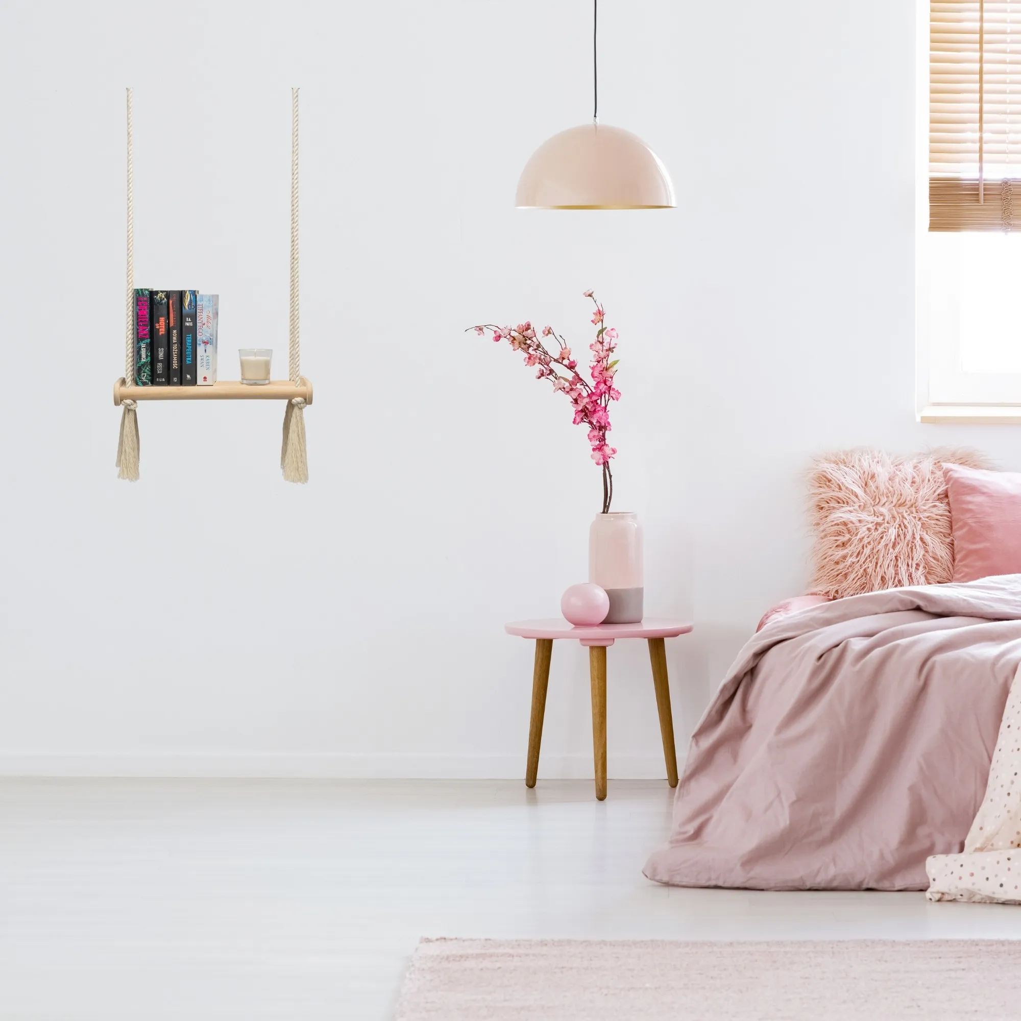 Nasza wisząca półka ścienna z bawełnianymi linami to unikalne połączenie naturalnych materiałów i stylowego wzornictwa. Wykonana z wytrzymałego drewna sosnowego, półka jest zarówno trwała, jak i przyjazna dla środowiska, co czyni ją idealnym wyborem dla osób dbających o środowisko. Ręcznie tkane bawełniane liny w stylu boho nadają jej wyrazisty charakter, który bez trudu łączy się z różnymi stylami wnętrz, od nowoczesnego po rustykalny. Dzięki swojej wszechstronności półka jest idealna do różnych pomieszczeń – może być używana w kuchni jako stojak na przyprawy, w sypialni do eksponowania ulubionych książek lub w salonie jako stojak na rośliny lub powierzchnia dekoracyjna. Jej minimalistyczny, ale ciepły design tworzy przytulną atmosferę i wprowadza naturalny akcent do domu. Półka jest niezwykle łatwa w montażu, a solidna konstrukcja zapewnia trwałość i wytrzymałość, dzięki czemu z łatwością utrzyma dekoracje i przedmioty codziennego użytku. Jest to idealne rozwiązanie dla każdego, kto szuka funkcjonalnych, ale estetycznych elementów wyposażenia.