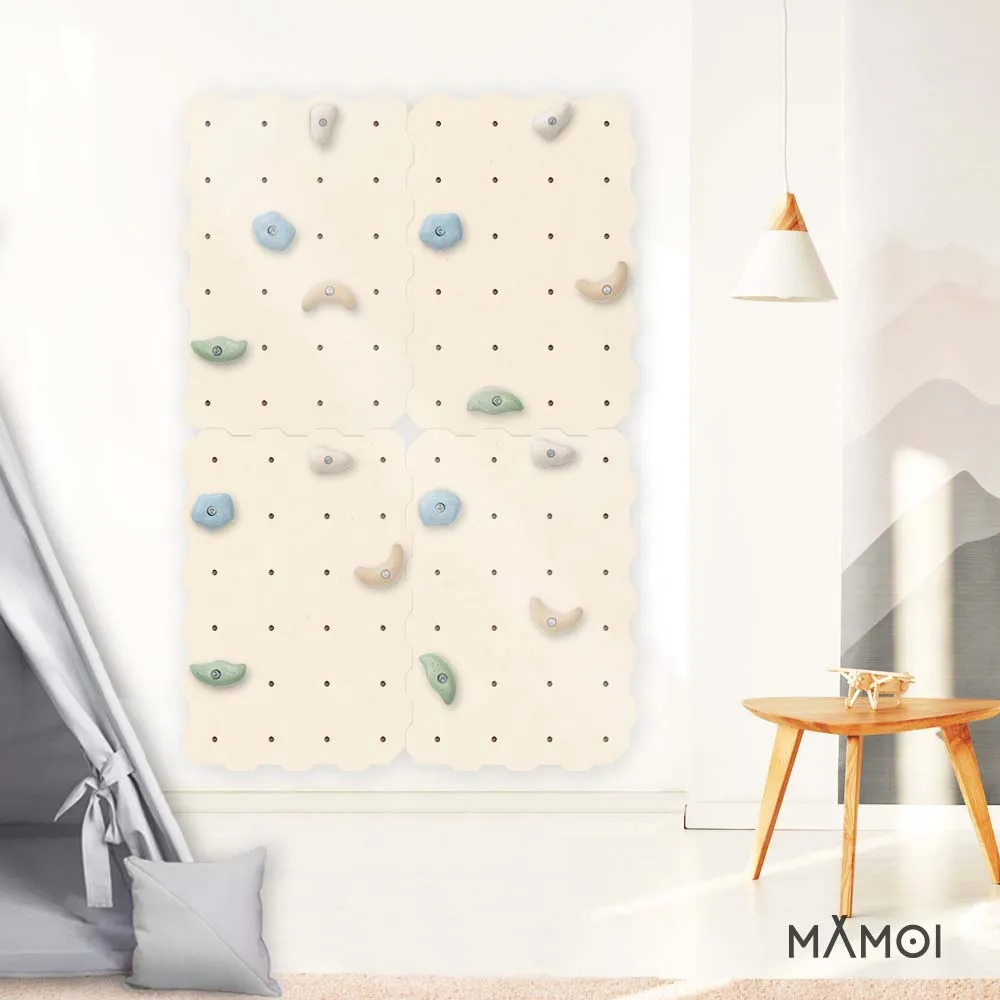 MAMOI® Ścianka wspinaczkowa dla dzieci do użytku wewnętrznego z uchwytami | Zrównoważona ekologicznie ścianka wspinaczkowa dla dzieci z naturalnego drewna | Ścianka wspinaczkowa do pokoju dziecięcego o minimalistycznym wzornictwie w pastelowych kolorach | 100% ekologiczna | Wyprodukowana w UE