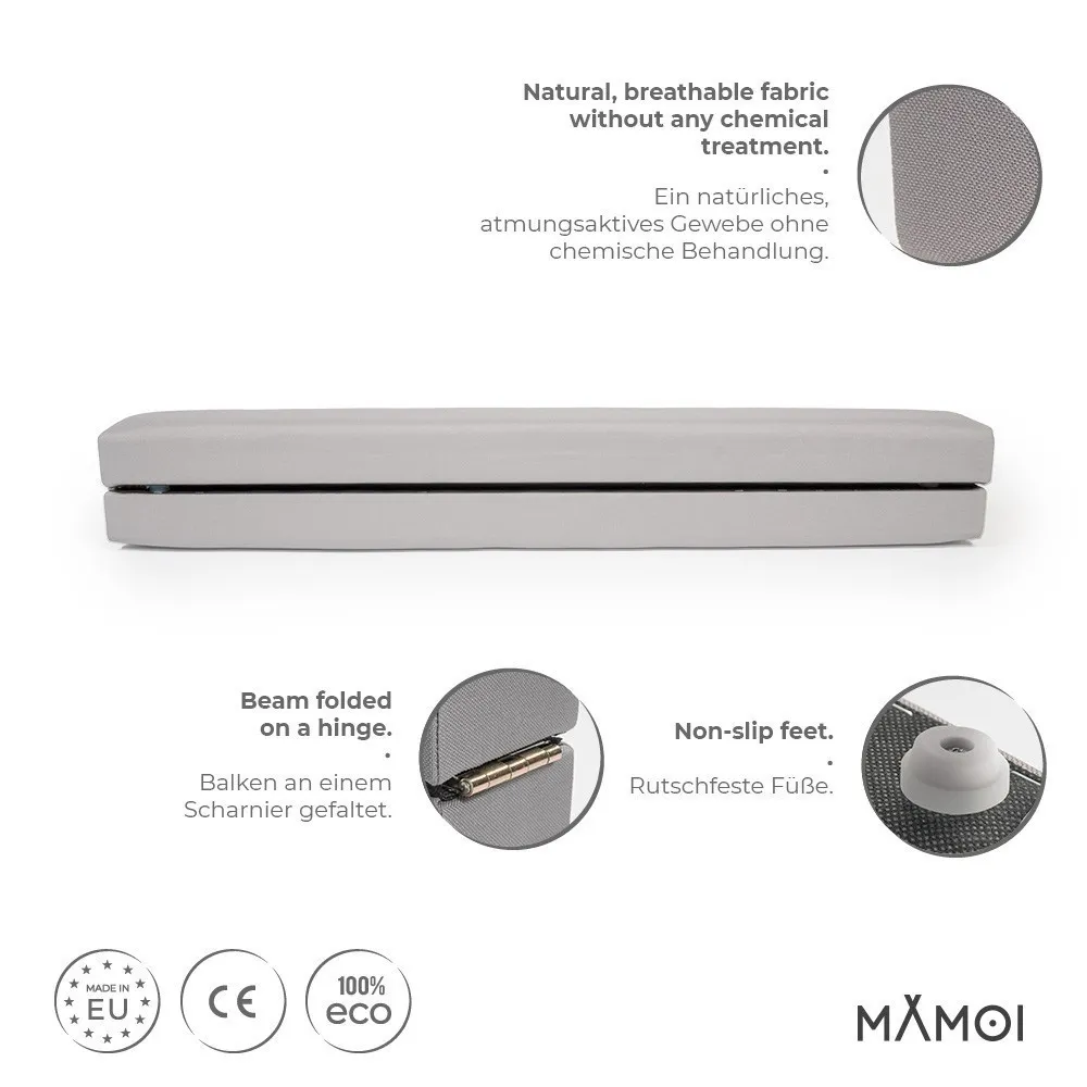 Una trave pieghevole ginnastica artistica di MAMOI è progettata per i bambini che amano il movimento e la ginnastica a casa. Il design semplice permette una rapida preparazione e in seguito un gioco sicuro in camera o in soggiorno. Trave ginnastica artistica pieghevole permette il gioco, l’allenamento dell’equilibrio, l’allenamento del balletto, il salto così come può anche servire come una singola parte di vari tipi di gioco. Il prodotto è pieghevole e facile da trasportare e conservare.