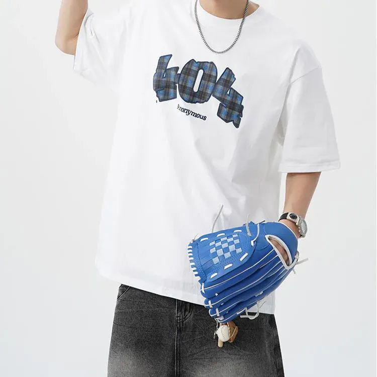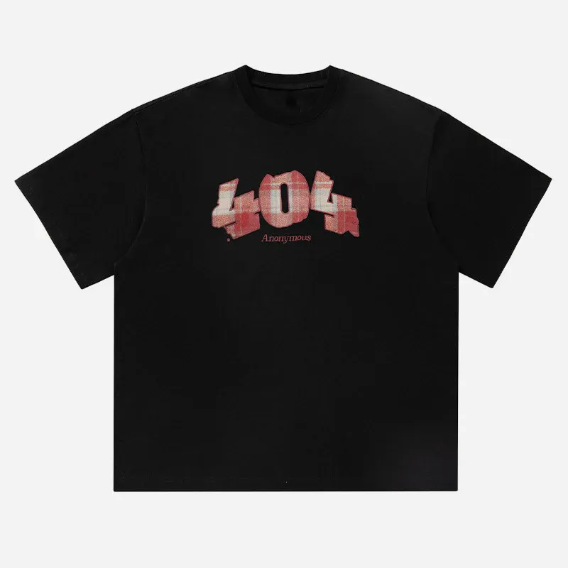 - Creative “404” graphic print with subtle plaid design for a retro-tech vibe