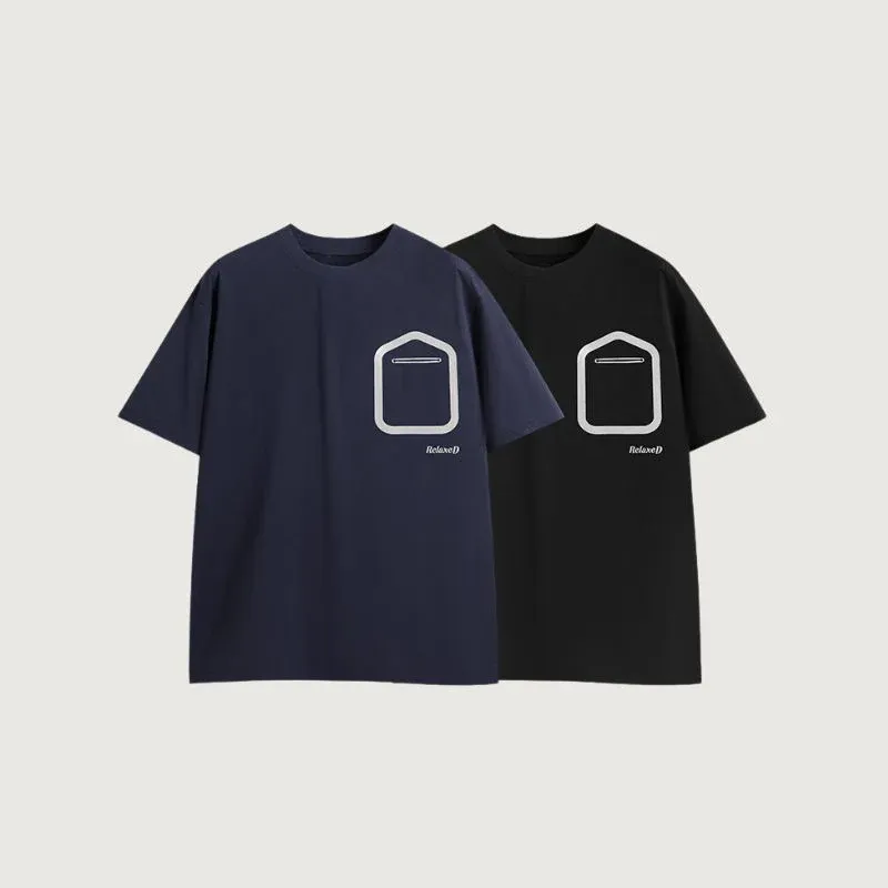 Features: Tee, crew neck, short sleeve, laminated pocket printed design, unisex, relaxed fit, oversized, couple outfits.