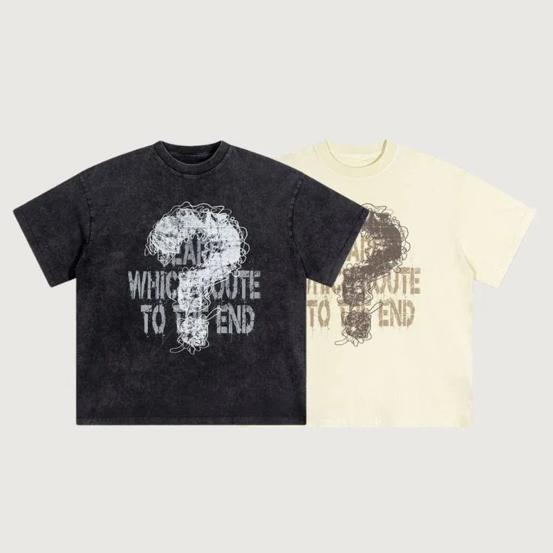 Features: Tee, crew neck, short sleeves, color contrast, question mark prin design, loose fit, soft and breathable, unisex.