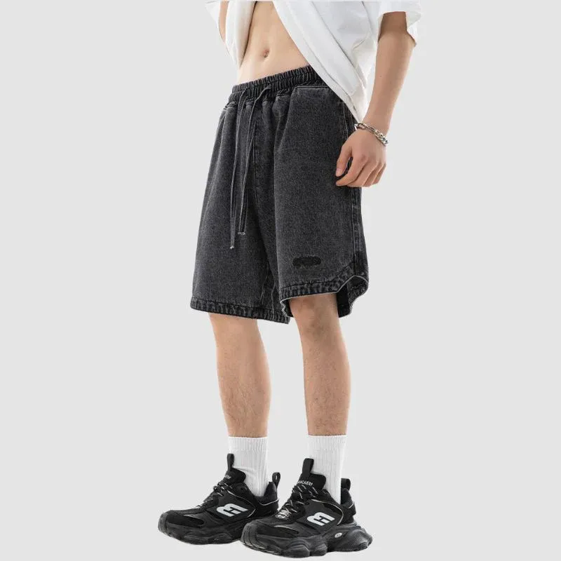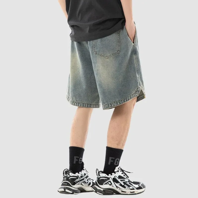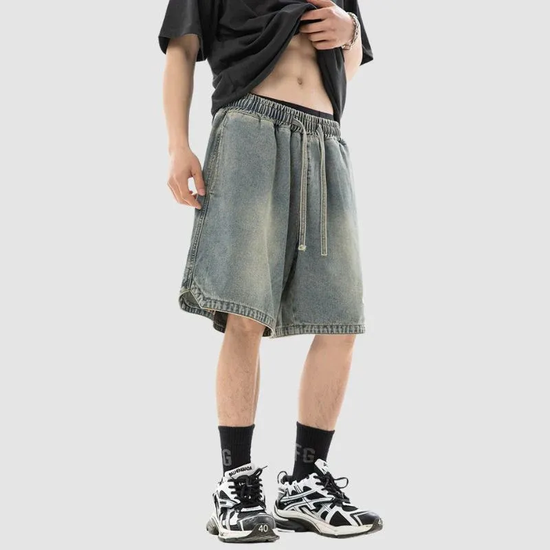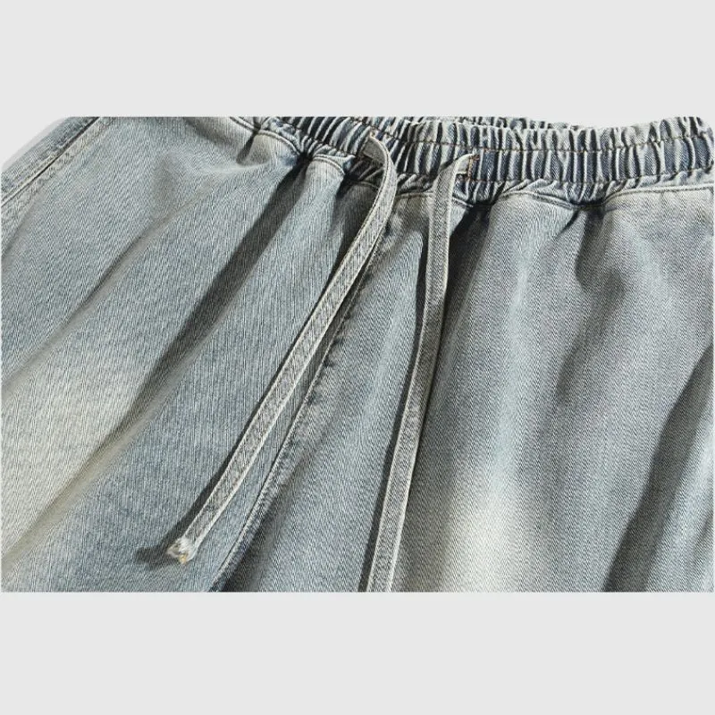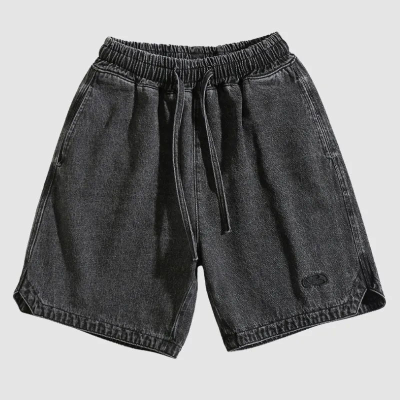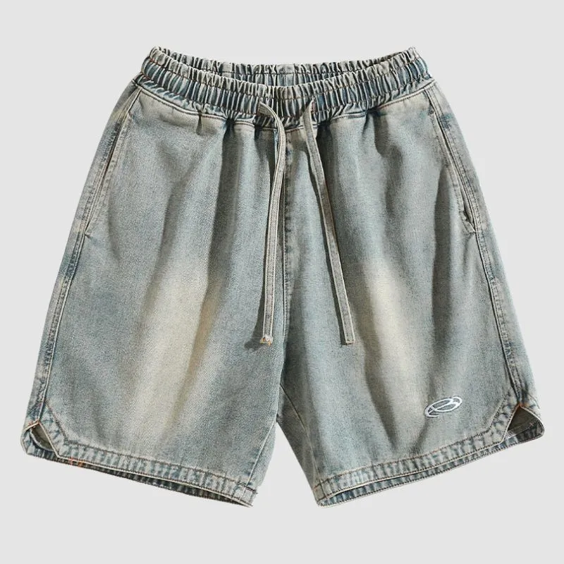Features: Jorts, slit design, washed, drawstring waist, pattern embroidered, vintage, side pocket, straight-leg, relaxed fit, unisex, couple outfits.