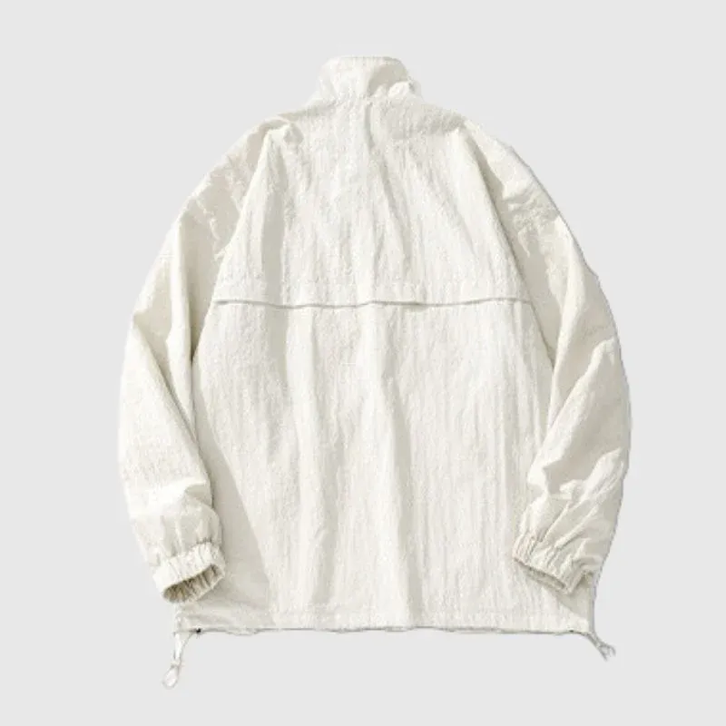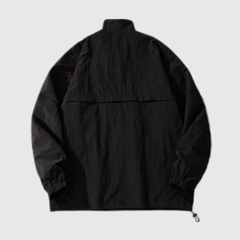 Features: Jacket,stand collar, long sleeve, waterproof solid color zipper design, no stretchy, relaxed fit, unisex, soft and breathable, couple outfits.