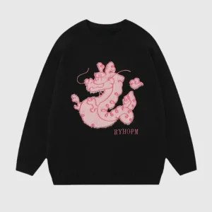 Cartoon Dragon Embroidered Knit Sweater