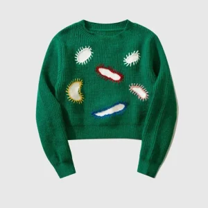 Embroidered Patchwork Cute Short Knit Sweater