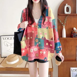 Retro Cartoon Cat Cardigan